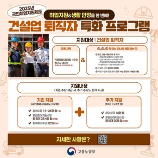 고용노동부, 취업지원과 생활 안정을 한 번에! '건설업 퇴직자 특화 프로그...