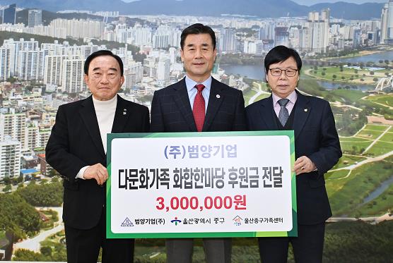 ㈜범양기업이 12월 13일 오전 10시 중구청 구청장실을 찾아 다문화가족 후원금 300만 원을 전달했다.