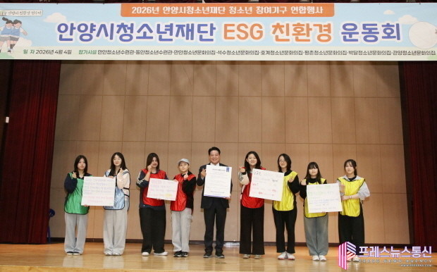 [프레스뉴스] 장현준 기자= 안양시청소년재단(이사장 최대호)은 지난 4일 평촌과학기술고등학교 체육관에서 재단 소속 자치조직 청소년 170명이 참여한 가운데 ‘ESG 친환경 운동회’를 개최했다고 7일 밝혔다.