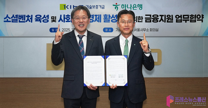 [프레스뉴스] 류현주 기자= 하나은행(은행장 이호성)은 기술보증기금(이사장 김종호)과 소셜벤처기업 육성 및 사회연대경제 활성화를 위한 업무협약을 체결했다고 밝혔다.