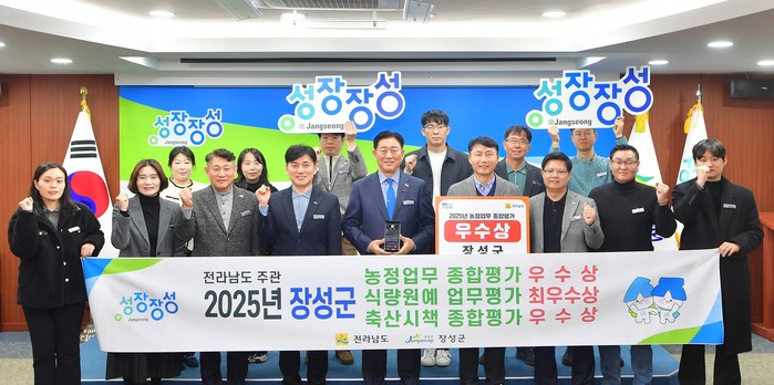 [전남=프레스뉴스] 박정철 기자=장성군이 최근 전라남도 농정업무 종합평가에서 종합 우수상을 수상했다. 식량·원예분야 최우수상, 농식품유통 우수상, 축산분야 우수상도 받았다.