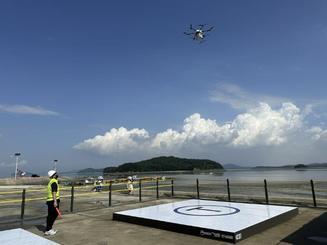충남 서산시의 가로림만 맞춤형 드론 배송 상용화 서비스가 섬 지역 시민과 관광객의 편의를 향상했다.