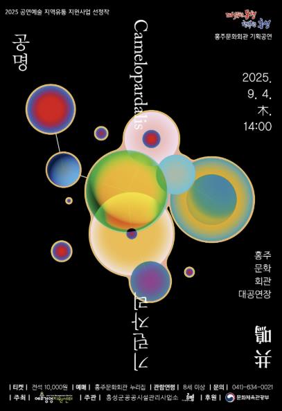 공연은 8세 이상 관람 가능하며, 티켓은 전석 1만원으로 홍주문화회관 누리집에서 예매 가능하다. ‘기린자리(Camelopardalis)’는 북쪽 하늘에 위치한 별자리를 의미하며, 높고 멀리 보는 존재로서의 상징을 담고 있다. 공연은 자연과 우주, 그리고 인간의 관계에 대한 성찰을 사운드 아트와 시작적 연출을 통해 구현하며, 청중은 이를 통해 ‘공명(共鳴)’의 의미를 몸소 체감하게 된다.