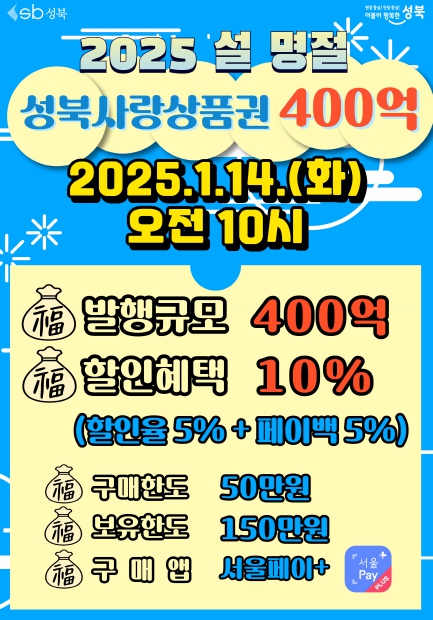서울 성북구가 2025년 설 명절을 앞두고 400억 규모의 ‘성북사랑상품권’을 발행한다.