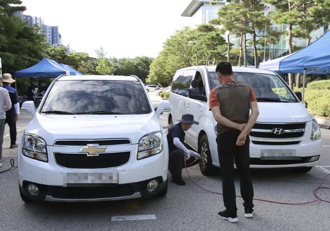 ▲ 도봉구 주민이 차량을 점검받고 있다. |