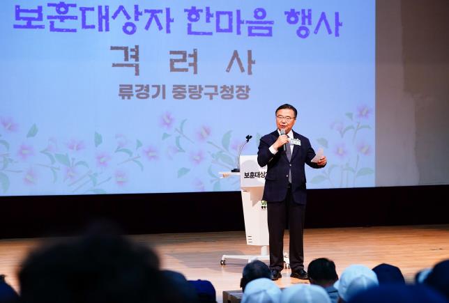 | ▲ 제23회 보훈대상자 한마음 행사에서 격려사를 전하는 류경기 중랑구청장의 모습 |