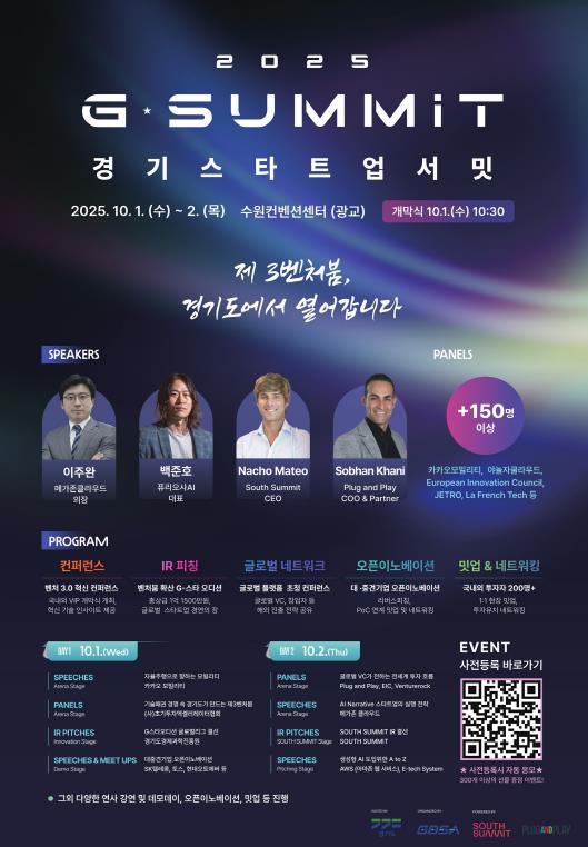 국내 최고 수준의 글로벌 스타트업 투자 박람회인 ‘경기 스타트업 서밋(G-SUMMIT)’이 오는 10월 1일부터 2일까지 수원컨벤션센터에서 열린다.