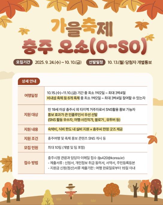 ▲ 충주시 ‘가을축제 오소(O-SO)충주’참가자 특별 모집 |