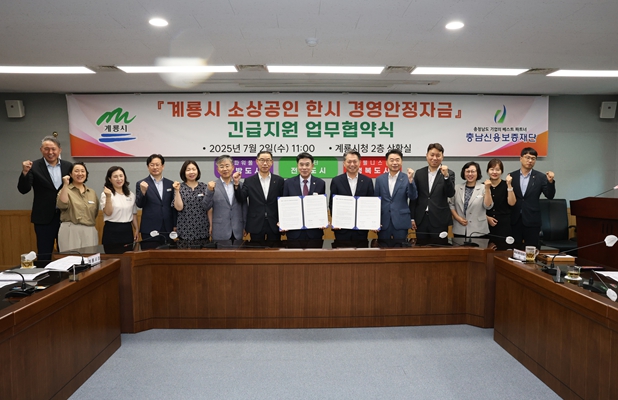 충남신용보증재단은 7월 2일 계룡시청에서 계룡시와 협력하여 소상공인 한시 경영안정자금 지원을 위한 업무협약을 체결했다고 밝혔다.