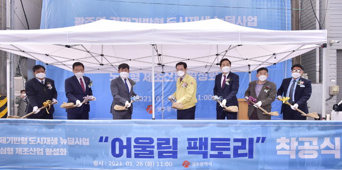 [광주=프레스뉴스] 강래성 기자= 광주광역시가 광주역 일원 창의문화산업 스타트업 밸리 조성을 위해 추진하고 있는 ‘광주역 경제기반형 도시재생 뉴딜사업’의 마중물이 될 ‘어울림팩토리 리모델링 사업’이 26일 착공식과 함께 본격적인 공사에 들어갔다.