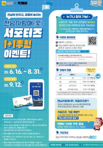 ▲ 전남 사랑애 서포터즈 1+1 추천이벤트 포스터 |
