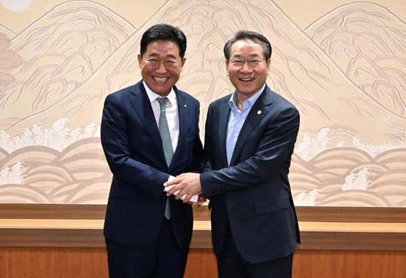 ▲ 유정복시장이 박종범 세계한인경제무역협회 회장을 만나(25.7.25) 10월 개최되는 세계한인인경제인대회 추진 상황을 점검하고 있다 |