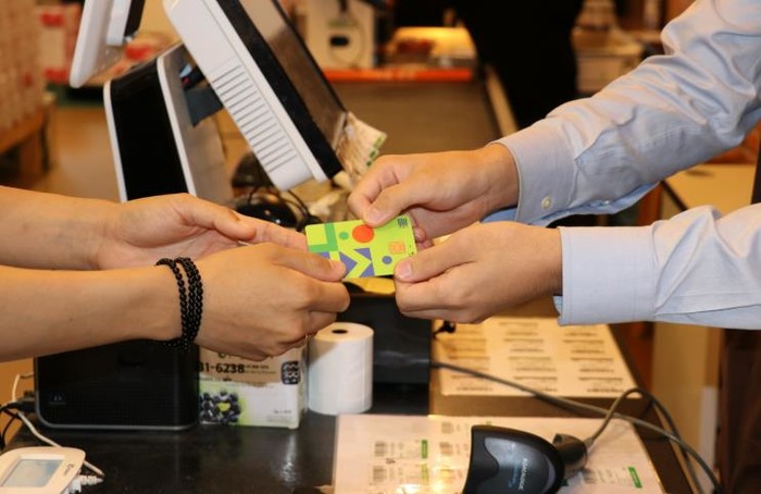 | ▲ 관내 한 마트에서 향수OK 카드로 결제하고 있다. |
