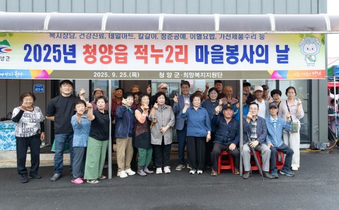 청양군은 2025년 ‘마을봉사의 날’이 지난 25일 청양읍 적누2리 마을회관에서의 마지막 일정을 끝으로 성황리에 마무리됐다고 밝혔다.