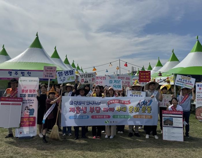 상주시는 9월 26일 상주세계모자페스티벌 행사장에서 ⌜저출생 부담타파 4대 문화운동⌟ 확산을 위한 시민참여 캠페인을 열었다.