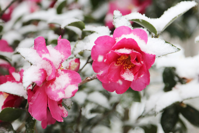 | ▲첫눈이 내리면서 겨울꽃(애기동백) 신안군 제공 |