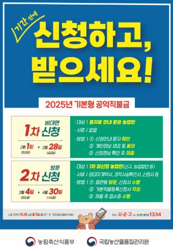 이에 따라 기본형 공익직불금과 기후위기시대 식량안보 강화를 위해 선택형 전략작물 직불금, 저탄소농업 프로그램을 확대 지원할 계획이다.