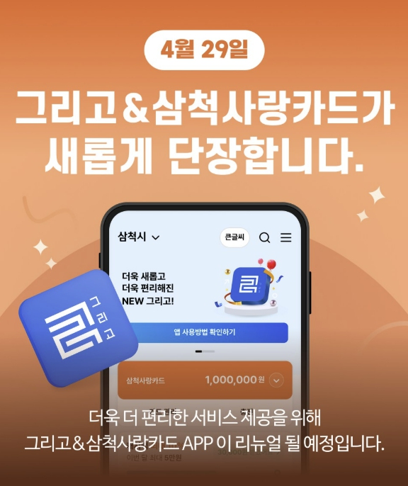 개편된 삼척사랑카드 앱은 4월 29일부터 업데이트를 통해 이용할 수 있다.
