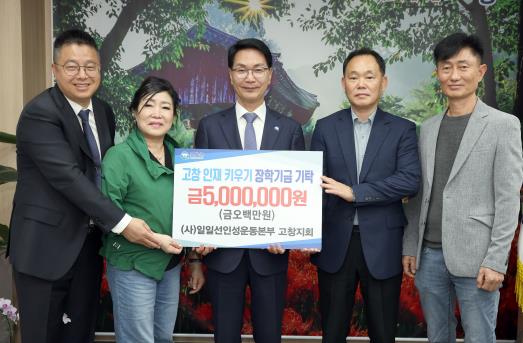 (사)일일선인성운동본부 고창지회가 지난 21일 고창군청을 찾아 500만원의 장학금을 기탁하며, 지역 학생들의 학업 의욕을 북돋우고 성장을 응원했다.