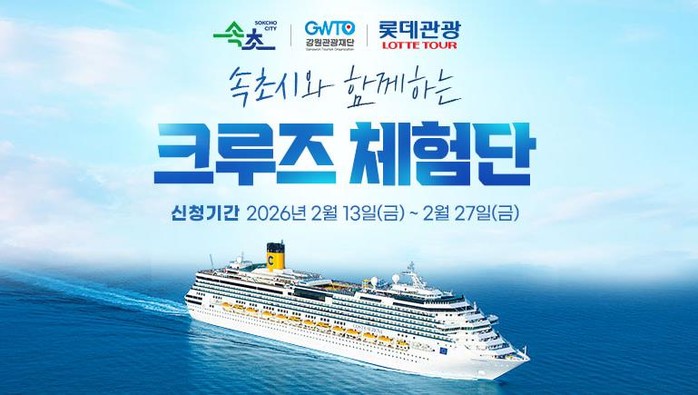 속초시가 크루즈 관광 저변을 넓히고 속초항을 환동해권 크루즈 중심지로 도약시키기 위해 ‘2026년 속초항 모항 크루즈 체험단’을 모집한다.
