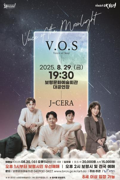 보령시는 29일 오후 7시 30분 보령문화예술회관 대공연장에서 V.O.S · J-CERA ‘Voice of the Moonlight’ 콘서트를 개최한다고 밝혔다.