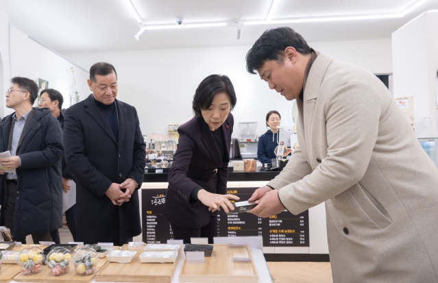 오영주 중소벤처기업부 장관이 지난 13일 공주시 공산성 골목형 상점가를 방문해 점포 운영 현황을 점검하고 상인들의 현장 목소리를 들었다.