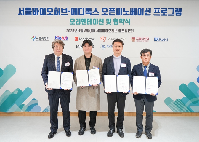 한편, 이날 서울바이오허브와 메디톡스는 협약식 이후 오픈 이노베이션 프로그램 오리엔테이션을 진행했다. 메디톡스는 국내 대표 보툴리눔 톡신 분야 기업으로서 그간 쌓아온 노하우와 축적된 네트워크를 활용해 창업기업이 보유한 기술을 컨설팅, 공동 연구 등을 통해 고도화 할 수 있는 방안 등을 제시했다.
