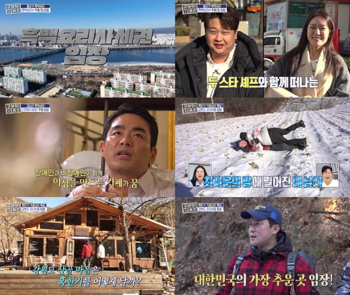 이어진 ‘강원도 혹한기’ 특집에서는 최저 기온 영하 10도, 체감 온도 영하 13도의 강추위 속에 강원도 정선의 오지마을로 임장을 떠났다. ‘자연파’ 김대호와 양세형, ‘도시파’ 양세찬과 안재현이 함께하며 극과극 찰떡 케미를 자랑했다. 이들은 혹한을 이겨내는 사람들의 일상을 오감으로 임장하고 왔다.