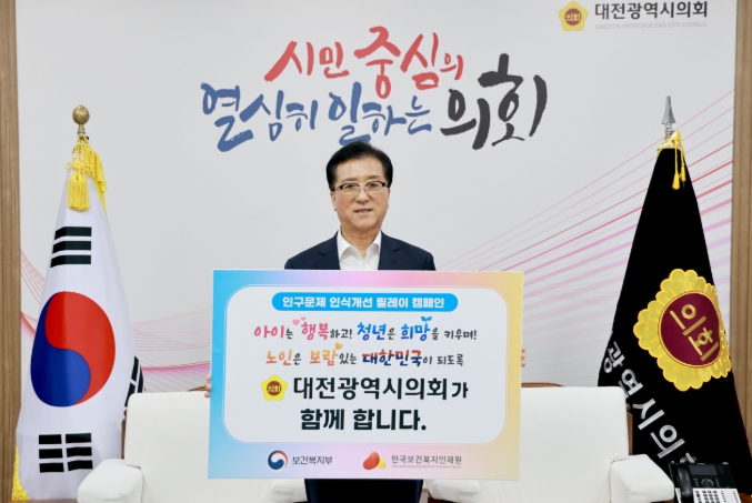 대전시의회는 14일, 조원휘 의장이 보건복지부와 한국보건복지인재원이 주관하는 ‘인구문제 인식개선 릴레이 캠페인’에 동참했다고 밝혔다.