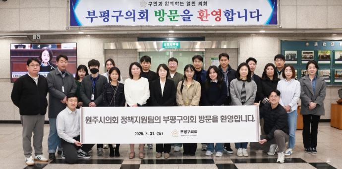 부평구의회는 3월 31일 원주시의회 정책지원팀의 벤치마킹을 위한 방문을 환영하고, 양 의회간 협력을 강화하고 경험을 공유하는 시간을 가졌다고 밝혔다.