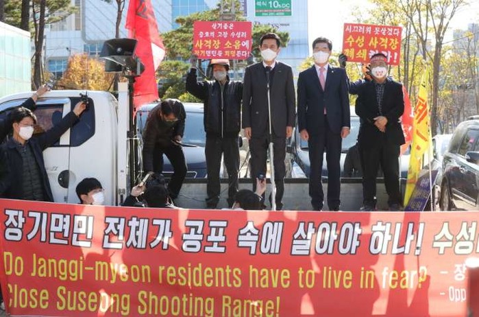 이에, 장기면민 등 포항시민들은 수성사격장 이전·폐쇄를 위한 반대대책위원회를 구성하여, 국방부 차관 및 국방위원 면담 및 민관군 합동 간담회 개최, 차량을 이용한 드라이브 스루 집회를 비롯한 수 차례의 집회와 국방부 및 주한미군사령부에 탄원서를 제출하는 등 필사적인 투쟁을 벌여왔으며, 최근에는 훈련을 저지하고자 트랙터 등 농기계를 이용하여 도로를 차단·봉쇄하는 조치를 취했다.