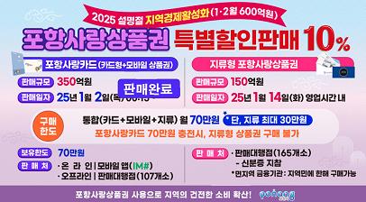 2일 발행한 포항사랑카드 완판, 14일부터 지류형 150억 10% 할인 판매