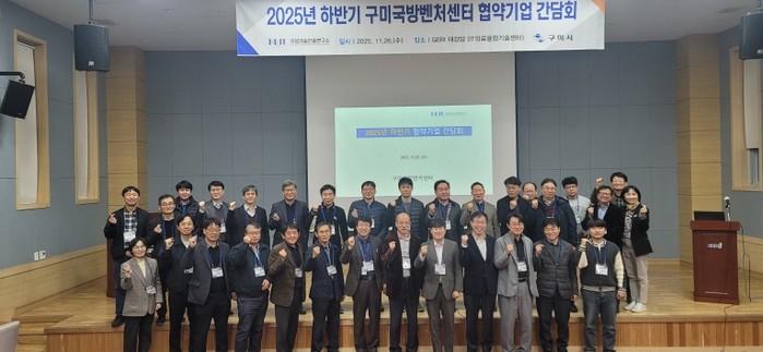 구미시는 11월 26일 금오테크노밸리 IT의료융합기술센터 대강당에서 '2025년 구미국방벤처센터 협약기업 간담회'를 열고 지역 방산기업의 성장 전략을 논의했다. 간담회에는 정성현 구미시 부시장과 구미국방벤처센터 협약기업 31개사를 포함해 50여 명이 참석했다.