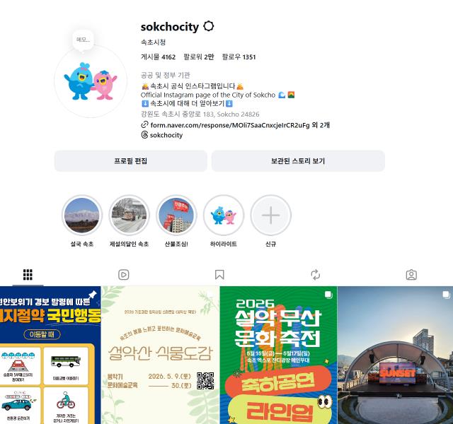 속초시가 공식 사회관계망서비스(SNS)를 활용해 시민과 관광객에게 한 걸음 더 가까이 다가선 홍보를 꾸준히 진행하며 성과를 거두고 있다.