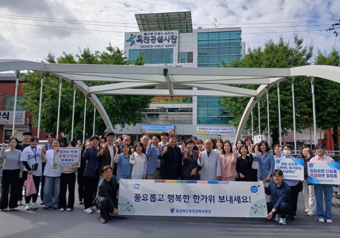 옥천교육지원청은 9월 29일, 우리 고유의 명절인 추석을 앞두고 지역 전통시장인 옥천공설시장을 방문하여 ‘추석맞이 장보기 행사’와 ‘청렴 실천 캠페인’을 함께 진행했다.