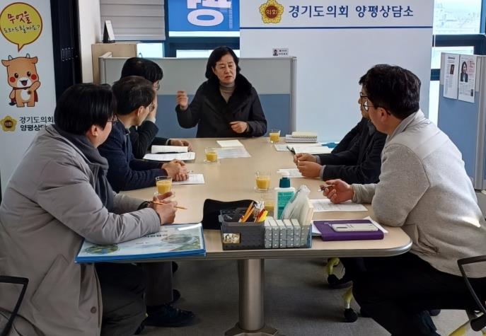 경기도의회 박명숙 의원(국민의 힘, 양평 1)은 3일 양평상담소에서 경기도청, 양평군청 하천과 공무원들로부터 2025년 양평군 내 지방하천 정비사업 및 관리 추진 현황에 대해 업무보고 및 논의하는 정담회를 진행했다.