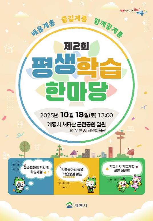 계룡시는 오는 18일 오후 1시부터 시청 앞 새터산 근린공원에서 시민이 주도하는 배움의 축제 “2025 제2회 계룡시 평생학습 한마당”을 개최한다고 밝혔다.