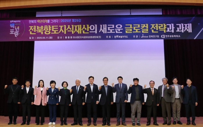 전북연구원(원장 이남호)은 11일 오전 8시 전북특별자치도청 대회의실에서‘전북향토지식재산의 새로운 글로컬 전략과 과제’를 주제로 '전북 백년포럼' 제29강을 개최했다.