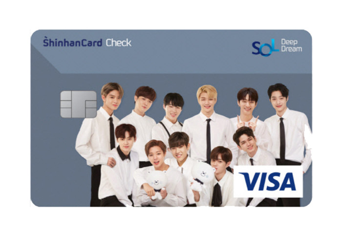 신한카드는 신한은행의 공식 광고모델인 보이그룹 워너원을 내세워 '쏠딥드림(SOL Deep Dream) 체크카드(워너원 한정판)'를 출시했다.
