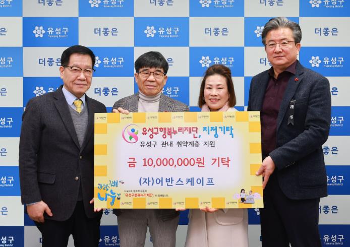 정용래 유성구청장은 “이번 성금 기탁은 어려운 기업환경에서도 지역사회와 연대, 상생의 기업 가치를 실현하는 모범적인 사례”라며 “유성구 기업들의 따뜻한 기부 문화가 지역 복지 향상과 포용적인 지역사회를 만드는 데 크게 기여하고 있다”고 말했다.