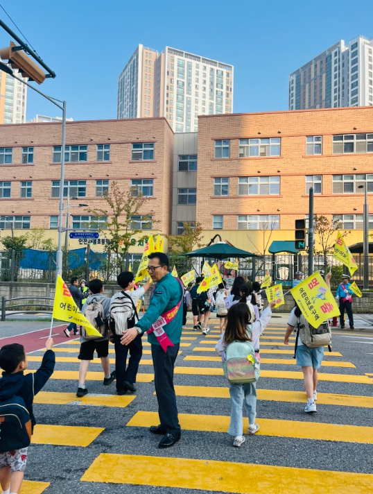 연수구는 지난달 30일과 10월 1일 은송초등학교와 새봄초등학교 앞 스쿨존 횡단보도에서 ‘어린이 교통안전 깃발 캠페인’을 실시했다.