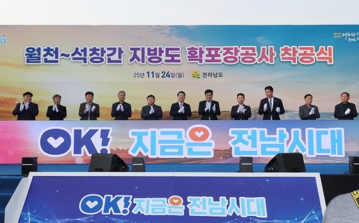 함평군은 25일 “손불면 일원에서 ‘월천~석창간 지방도 확·포장공사’ 착공식이 김영록 전라남도지사, 이상익 함평군수, 모정환 전남도의원, 이남오 군의회 의장 등 주요 인사와 주민 300여 명이 참석한 가운데 성황리에 개최됐다”고 밝혔다.