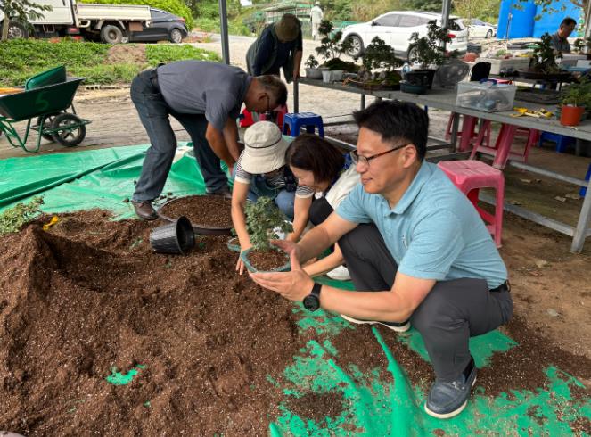 ▲ 함평군 국화동호회, 국화 분재 준비 사진 |