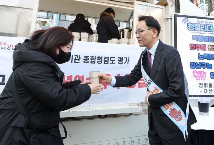 이번 캠페인은 강남구 청렴동호회 ‘다산회’가 주관했다. 다산회 회원들은 출근길 직원들에게 ‘청렴커피(차)’를 건네며 3년 연속 청렴 우수등급 달성을 함께 일군 직원들에게 감사의 뜻을 전했다. 동시에 부정부패와 갑질 근절, 공정하고 투명한 행정 실천 의지를 되새기는 현장 캠페인도 함께 펼쳤다.