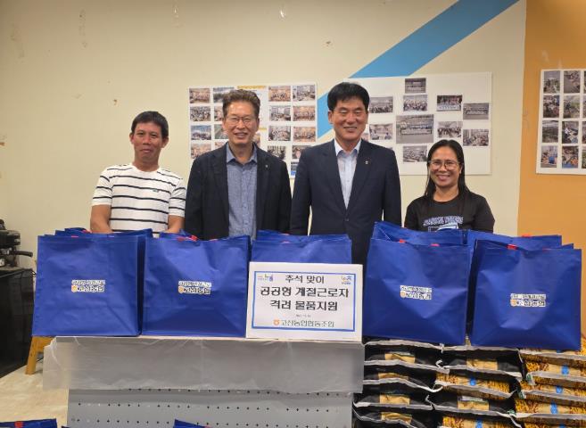 이번 행사는 추석 명절을 맞아 따뜻한 정을 나누고, 계절근로자들의 노고에 보답하기 위해 감사의 마음을 담아 쌀, 안전용품 키트 등을 전달하며 계절근로자들을 격려했다.