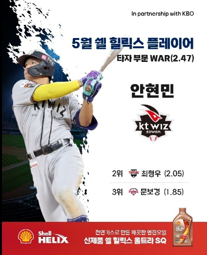 KBO와 한국쉘석유주식회사가 함께 시상하는 ‘쉘힐릭스플레이어’의 2025 신한 SOL뱅크 KBO 리그 5월 수상자로 KT 안현민과 SSG 앤더슨이 선정됐다.
