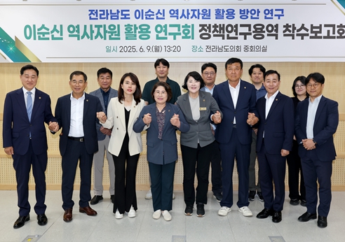 전라남도의회 ‘이순신 역사자원 활용 연구회(대표의원 김화신)’는 지난 6월 9일 도의회 중회의실에서 ‘전라남도 이순신 역사자원 활용 방안 연구’ 연구용역 착수보고회를 개최하고, 충무공 이순신 장군의 정신과 역사적 유산을 체계적으로 조명하기 위한 첫 발을 내디뎠다.