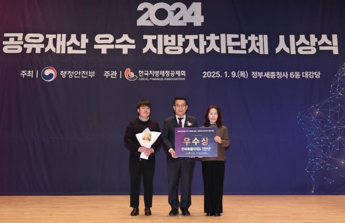 진안군은 지난 1월 9일 정부세종청사 대강당에서 열린 행정안전부 주관‘2024년 공유재산 우수 지방자치단체 시상식’에서 우수상을 받아 특별교부세 2,500만원을 확보했다고 밝혔다.