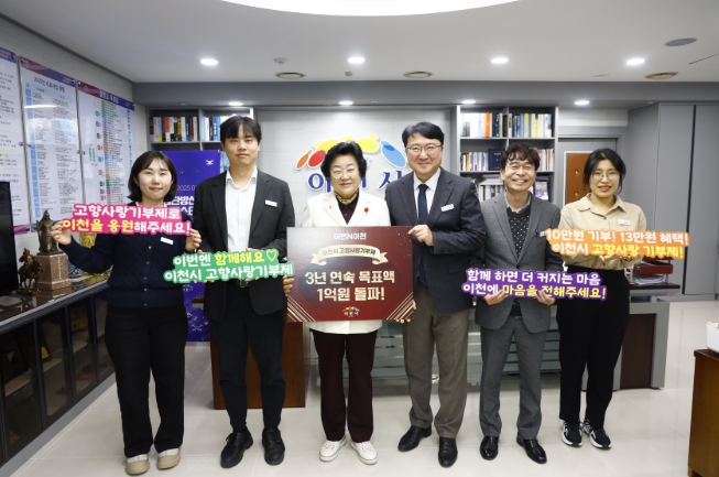 이천시는 고향사랑기부제 시행 이후 3년 연속 누적 기부금 1억 원을 돌파하며 제도의 안정적인 정착과 지속적인 성과를 이어가고 있다고 밝혔다.