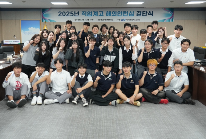 2~3학년 재학생 40명이 선발되어 13일 도교육청 대회의실에서 학생과 보호자, 학교 관계자가 참석한 가운데 ‘2025년 직업계고 해외인턴십 결단식’을 가졌다.